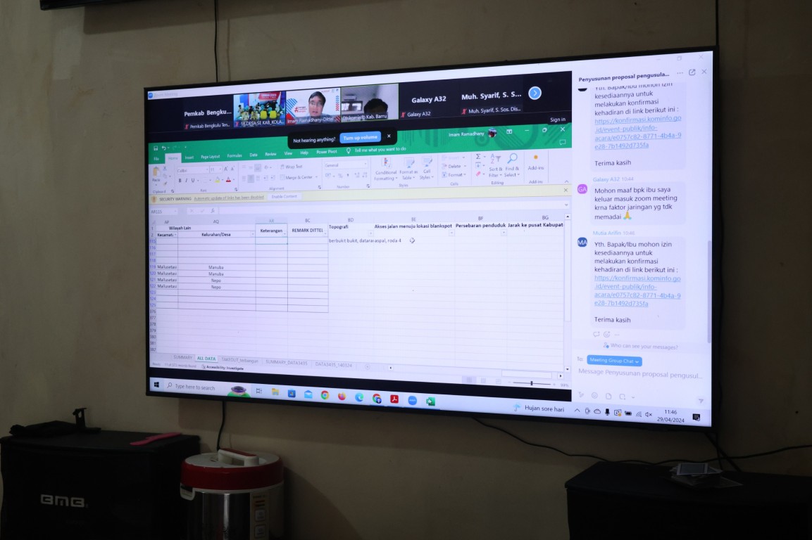 Kegiatan ini dilakukan penyusunan proposal pengusulan data wilayah blankspot dan sinyal lemah pada aplikasi https://signalkominfo.go.id oleh Pemerintah Daerah melalui zoom meeting bersama Kementerian Komunikasi dan Informatika RI Direktorat Jenderal Penyelenggaraan Pos dan Informatika, Direktorat Telekomunikasi.