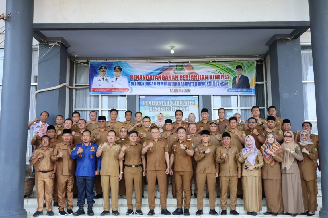Penandatanganan perjanjian kinerja dilakukan oleh Bupati Bengkulu Tengah bersama pejabat eselon II dan para camat. Bupati Rachmat Riyanto menekankan bahwa perjanjian kinerja menjadi dasar evaluasi kinerja OPD agar setiap program berjalan terukur dan tepat sasaran.