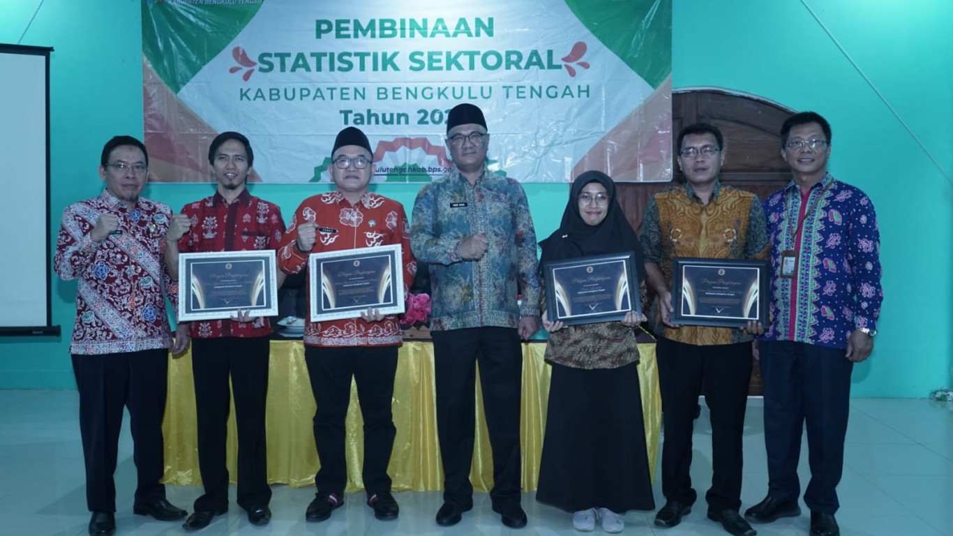 Penghargaan di berikan langsung oleh Penjabat Bupati Bengkulu Tengah Dr. Heriyandi Roni, M.Si.,yang juga membuka kegiatan Pembinaan Statistik Sektoral dengan Tema Pembinaan Metdata Statistik bagi Organisasi Perangkat Daerah (OPD) kepada Kepala Dinas Kominfotik Rahmat Apriadi, S.STP., M.E., melalui Kabid Statistik Sektoral Rahmat Daeng G., S.STP., M.AP.,