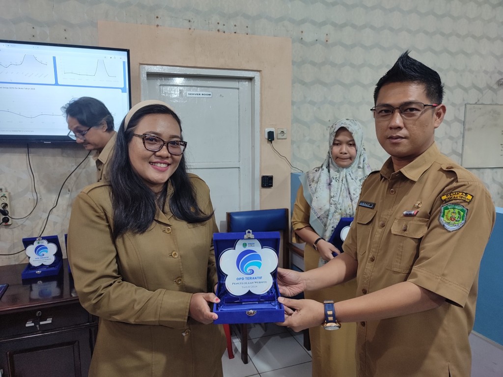 Dalam kesempatan tersebut, Sekretaris Dinas Muhammad Ario Nurvansyah menyerahkan secara langsung plakat penghargaan kepada 4 OPD teraktif dalam pengelolaan website. Adapun OPD teraktif.