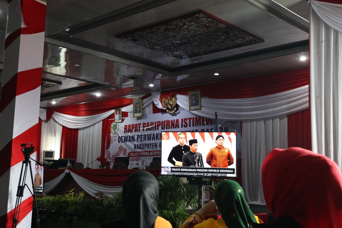 Bengkulu Tengah - Kepala Dinas (Kadis) Komunikasi, Informatika dan Statistik (Diskominfotik) Bengkulu Tengah Rahmat Apriadi, S.STP.,M.E mengahdiri Rapat Paripurna Istimewa DPRD Bengkulu Tengah dalam Rangka Memperingati HUT ke 79 Republik Indonesia di Ruang Gunung Bungkuk Kantor DPRD Bengkulu Tengah. Jumat (16/08/2024).