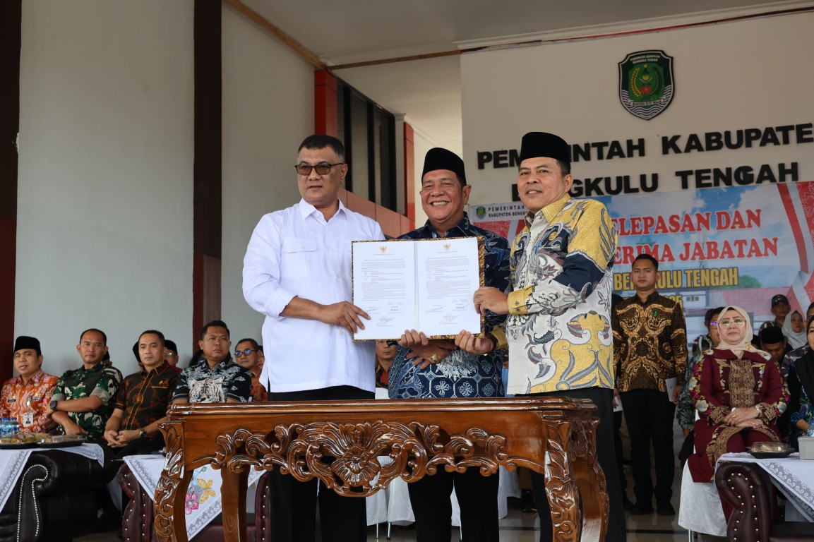 Acara diawali dengan penayangan video selayang pandang Pj Bupati Bengkulu Tengah kemudian dilanjutkan dengan sertijab (serah terima jabatan) dari Pj Bupati Bengkulu Tengah Dr.Heriyandi Roni, M.Si., kepada Bupati Bengkulu Tengah periode 2025-2030 Drs.Rachmat Riyanto,S.T, M.AP., yang diwakilkan Pj Sekda Bengkulu Tengah Drs.Hendri Donal, S.H.,M.H., ditandai dengan penandatanganan berita acara dan penyerahan memori jabatan.