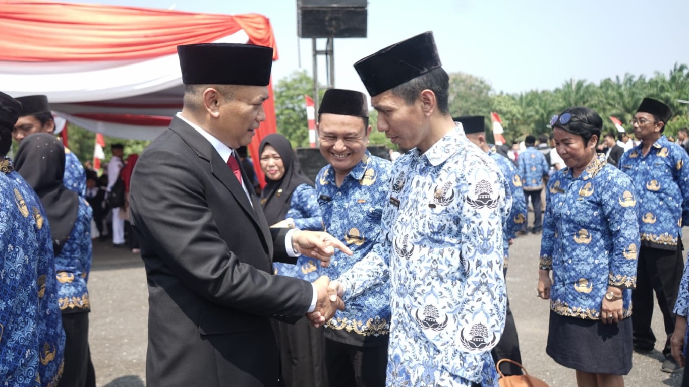 Bertindak sebagai Inspektur Upacara Pj. Bupati Bengkulu Tengah Dr. Heriyandi Roni, M.Si.,. Turut hadir Unsur Forkopimda beserta Istri, Ketua DPRD Budi Suryantono.,S.Sos., M.Si., beserta Istri, Wakil Ketua 1 DPRD Feri Heriadi, S.Sos,.M.Si., beserta anggota, Carateker Bupati periode tahun 2008-2010 H. Bambang Suseno, S.Km., Bupati Periode Tahun 2017-2022 H. Ferry Ramli, S.H., M.H. Sekretaris Daerah Drs. Rachmat Riyanto, S.T.,.M.AP., Pj. Ketua TP. PKK dr. Dian. A.R. Heri Roni, Ketua DWP Dr. Dharmarini Rachmat, Kepala Instansi Vertikal, para Asisten, Staf ahli, kepala OPD, camat serta Kepala Bagian di ruang Lingkup Pemerintahan Kabupaten Bengkulu Tengah.