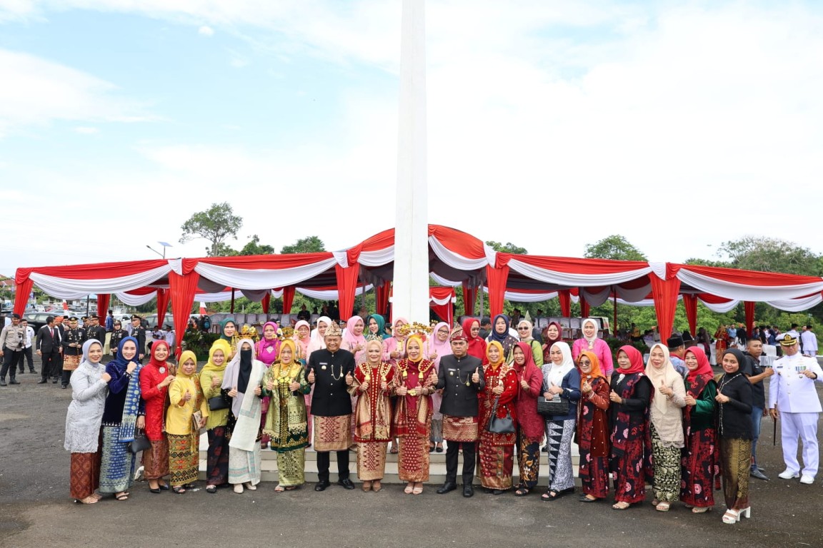 Bengkulu Tengah, Diskominfotik – Kepala Dinas Komunikasi, Informatika dan Statistik (Diskominfotik) Rahmat Apriadi, S.STP., ME., bersama Ketua DWP Dinas Kominfotik Heni Rahmat Apriadi mengikuti upacara Peringatan Hari Ulang Tahun (HUT) ke-17 Kabupaten Bengkulu Tengah yang berlangsung di Lapangan Gunung Bungkuk. Selasa (24/06/2025).