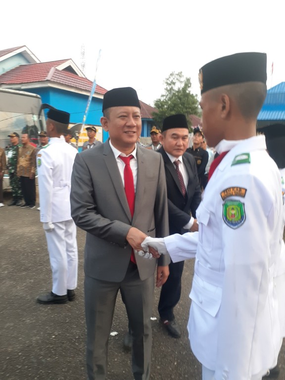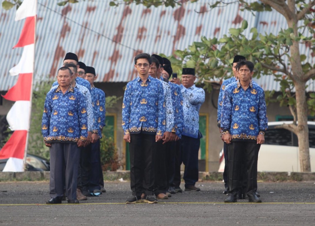 Kapolres Bengkulu Tengah Dedy Wahyudi, S.Sos., S.IK., MIk., Bertindak sebagai Inspektur Upacara Penurunan Bendera. Tampak hadir mengikuti Pj. Bupati Bengkulu Tengah Dr. Heriyandi Roni, M.Si., beserta jajaran dan Unsur Forkopimda.