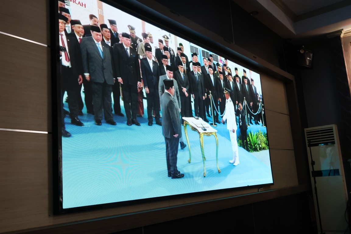 Setelah proses pelantikan oleh Presiden Republik Indonesia Prabowo Subianto selesai, Pj Bupati Heri Roni beserta jajaran mendengarkan arahan dari Presiden.
