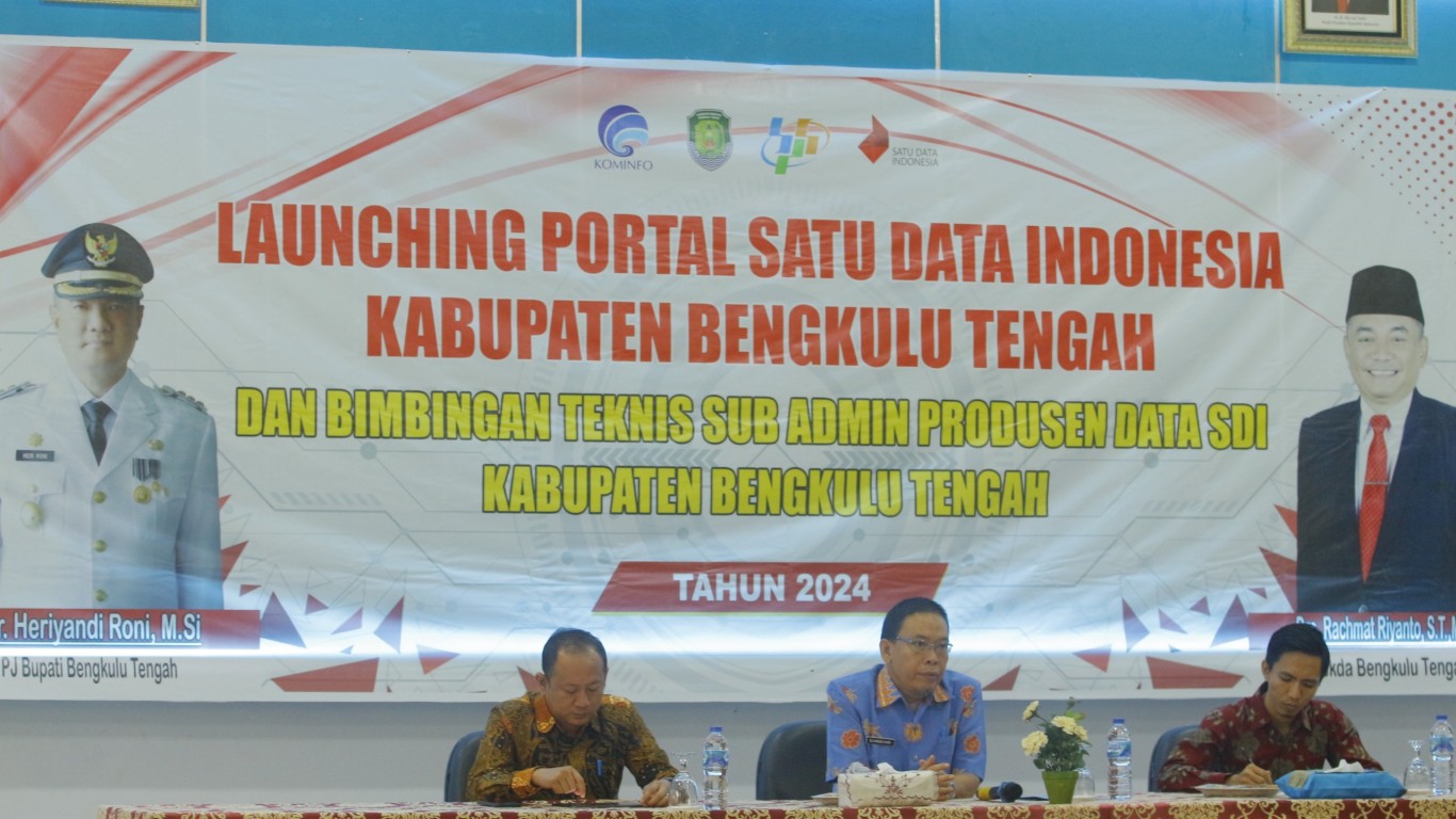Diskominfotik - Dinas Komunikasi Informatika dan Statistik Kabupaten Bengkulu Tengah mengadakan acara Launching Portal Satu Data Indonesia (SDI) Kabupaten Bengkulu Tengah dan Bimbingan Teknis Sub Admin Produsen Data SDI Kabupaten Bengkulu Tengah di Aula Hotel Puncak Tahura, Kamis (07/03/2024).