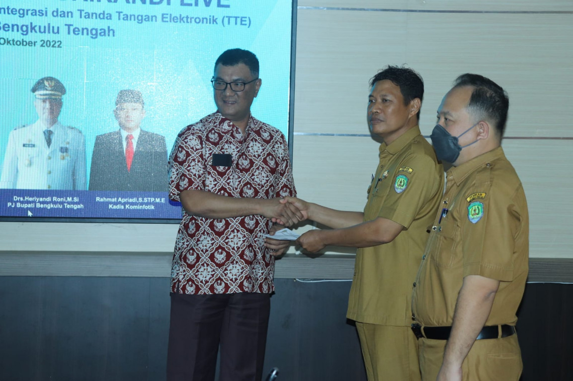 " Saatnya Pemerintah Daerah Kabupaten Bengkulu Tengah beralih dari tanda tangan basah ke tanda tangan elektronik (TTE) tersertifikasi.".Jelasnya