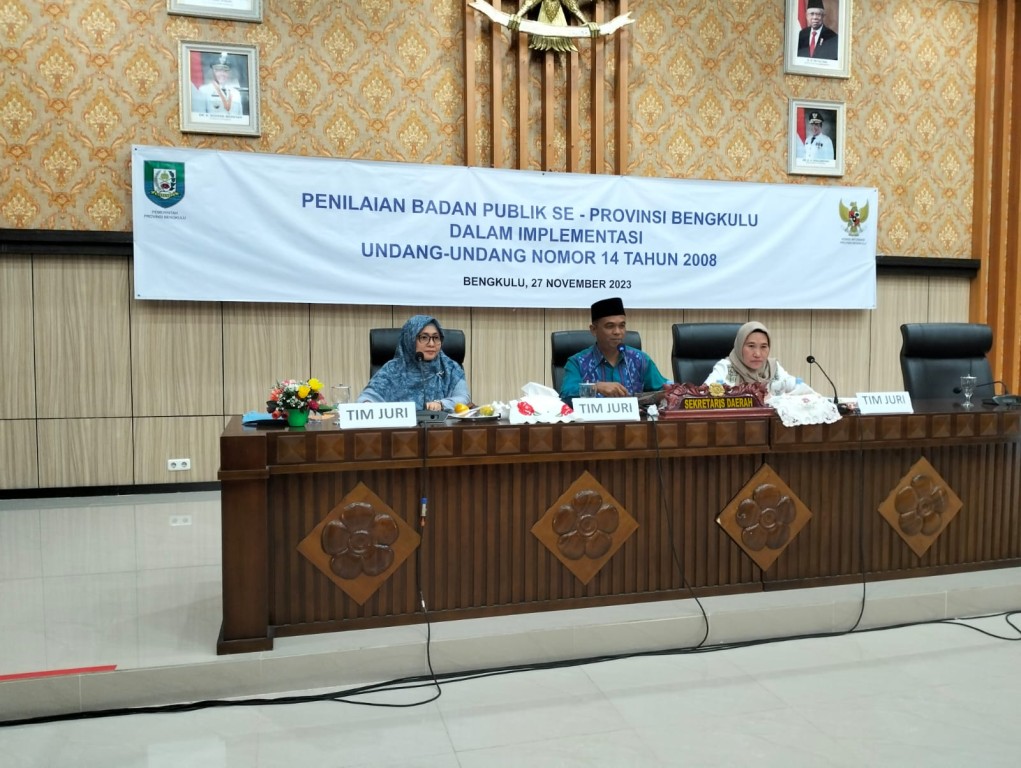 Bengkulu – Setelah melalui bebarapa tahapan pemeringkatan keterbukaan informasi badan publik tahun 2023 Se – Provinsi Bengkulu hari ini, Senin (27/10/2023) dilakukan tahapan penjurian badan publik yang di hadiri langsung Sekda Bengkulu Tengah Drs. Rachmat Riyanto, S.T.,M.AP di Gedung Pola Bappeda Provinsi Bengkulu.